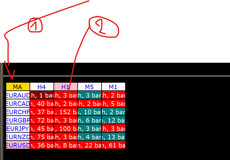 I have a big screen and i need to have bigger font for symbol (see mark 1 in screenshot) and please to have the possibility to have color (already) and only the number of bars to be able to read correctly and to not take too much place (see mark 2 in screenshot)