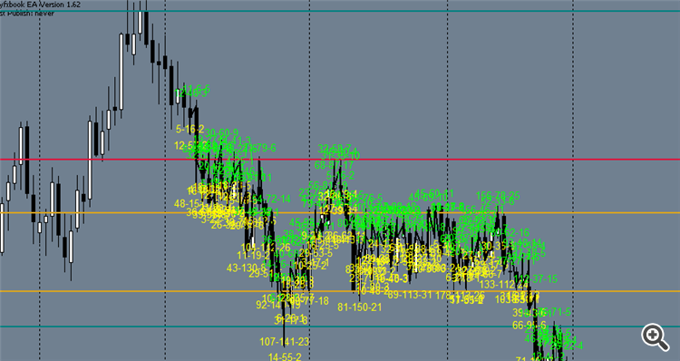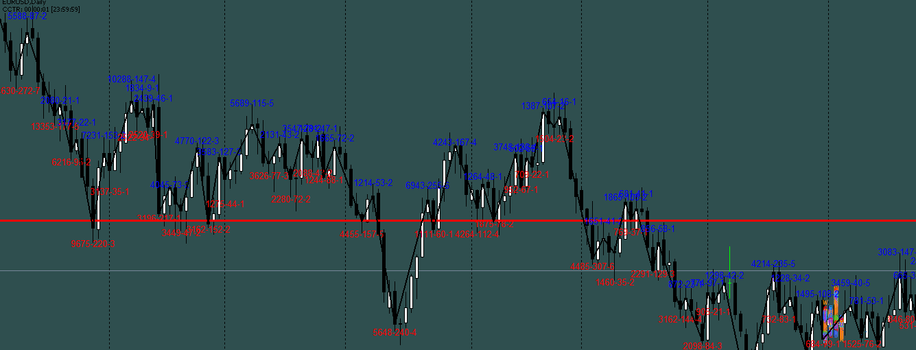 Only problem is that the labels seem to get "scarred" onto the chart even after the indicator has been deleted and chart has been refreshed. This is only mildly annoying on the H1, but renders the chart unreadable on the D1 as seen below.