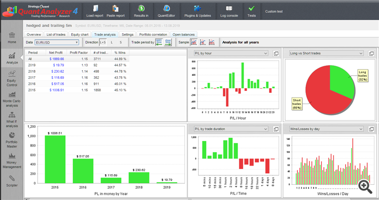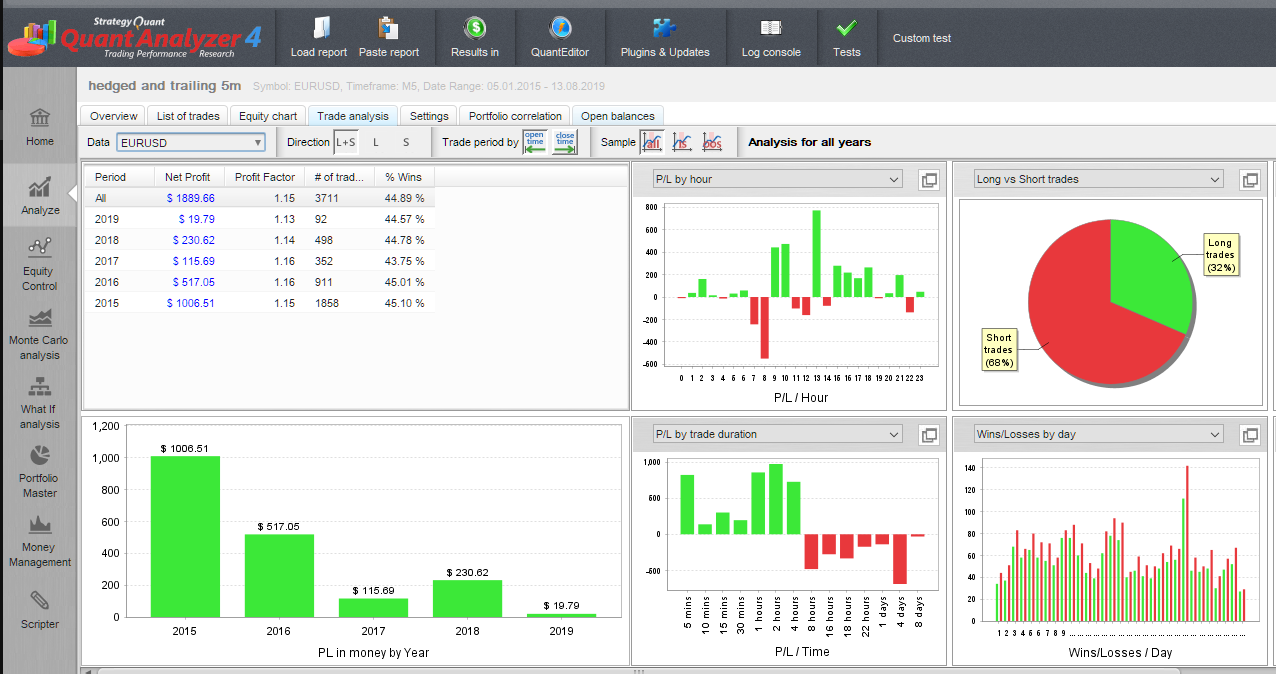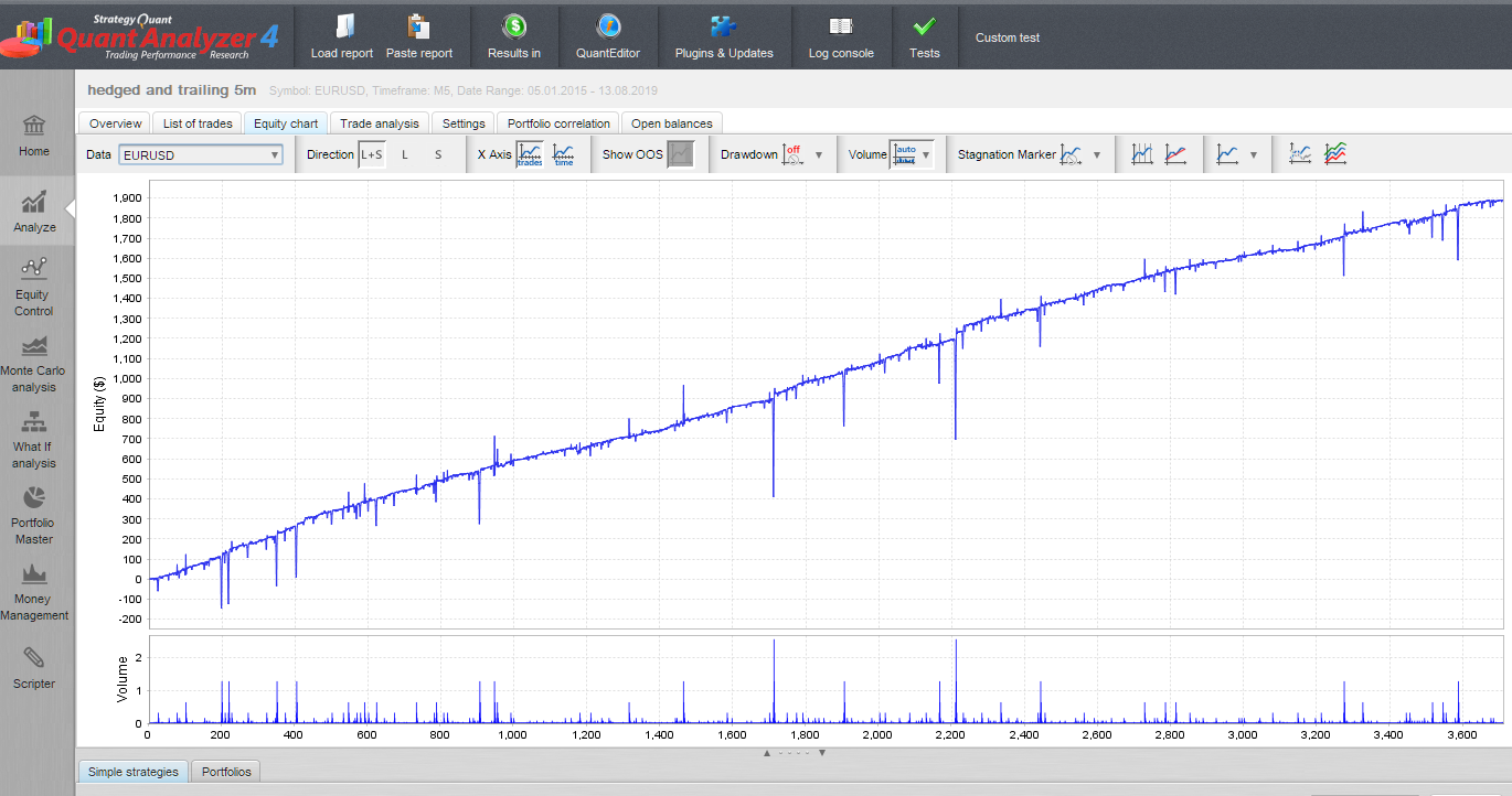 Therefore, a volatility filter that changes the size of the Grid between 20 and 27 would be ideal for the Bot to be stable in the long term. I cannot leave 27 because we see that more than $ 1000 is earned (with a capital of $ 200) in 2015 but in 2019 you hardly earn money.