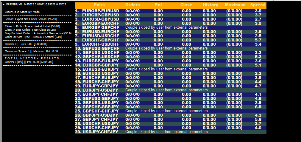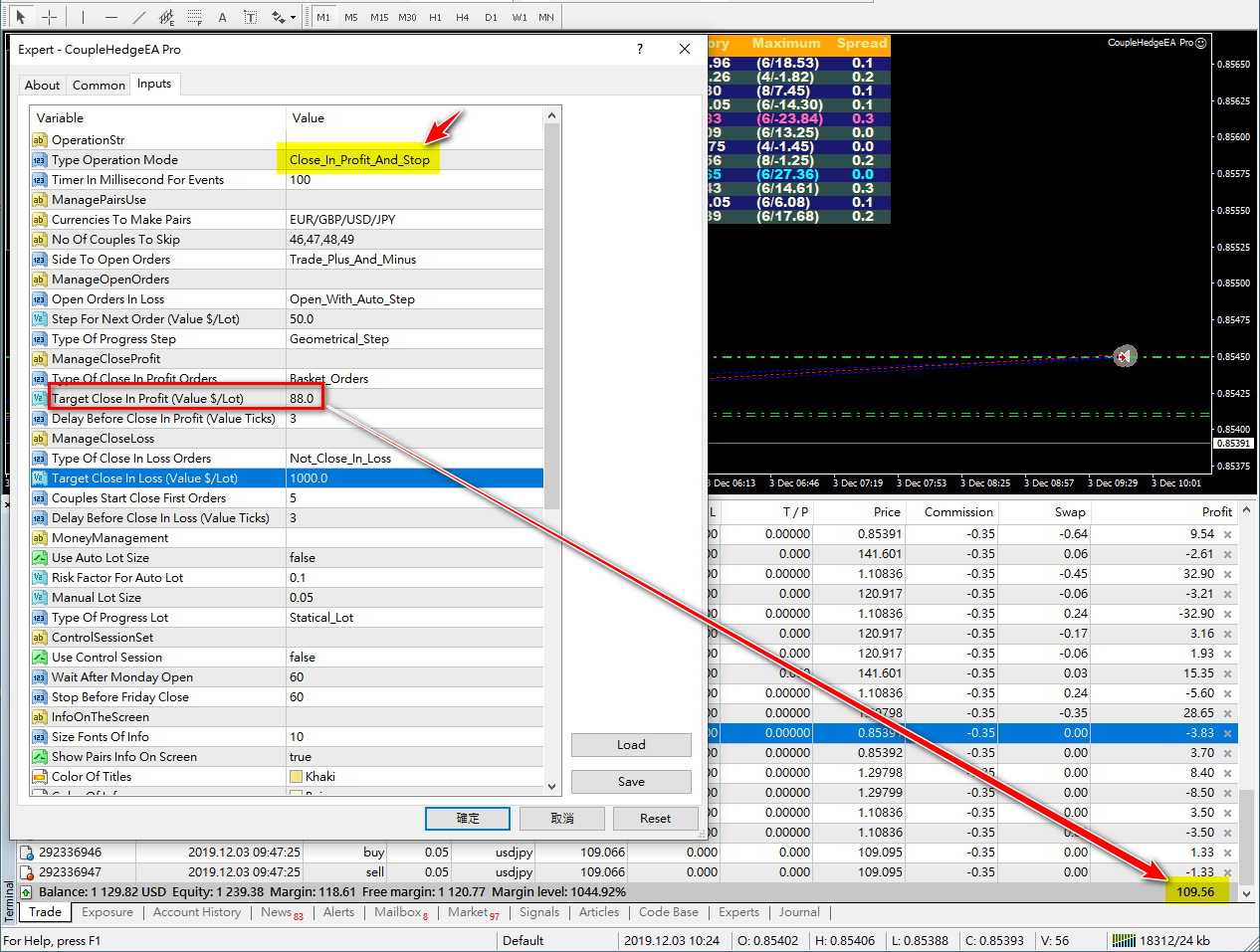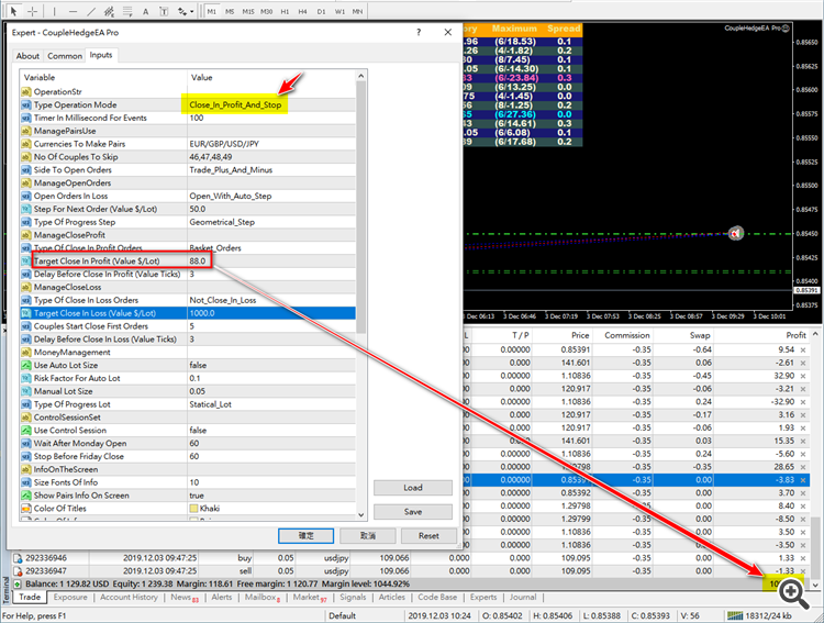 I'm very interested in EA, but I can't set up well. I want to close all positions with a basket total profit of 50pips or loss of 150pips, but it is partially closed along the way. How should the parameters be set?