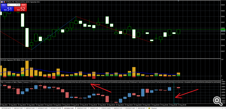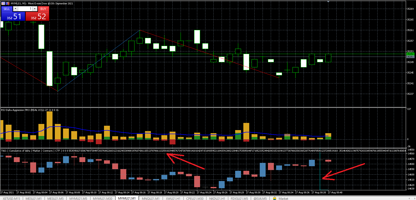 This picture is not typical, but sometimes it can happen (when the price goes up, while the cumulative delta goes down, or vice versa).