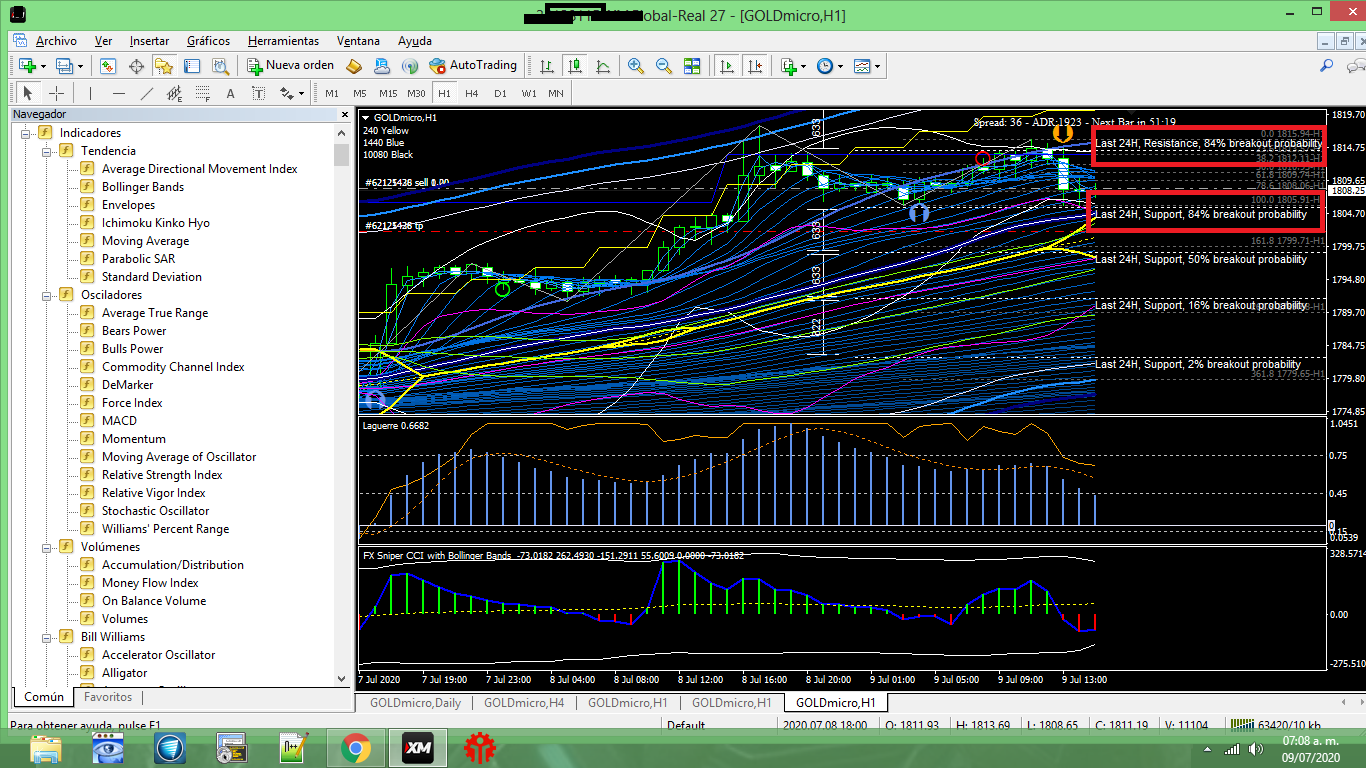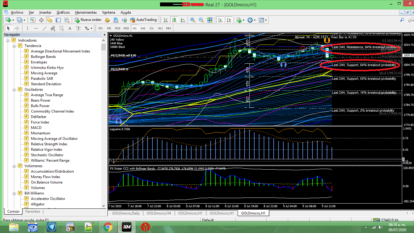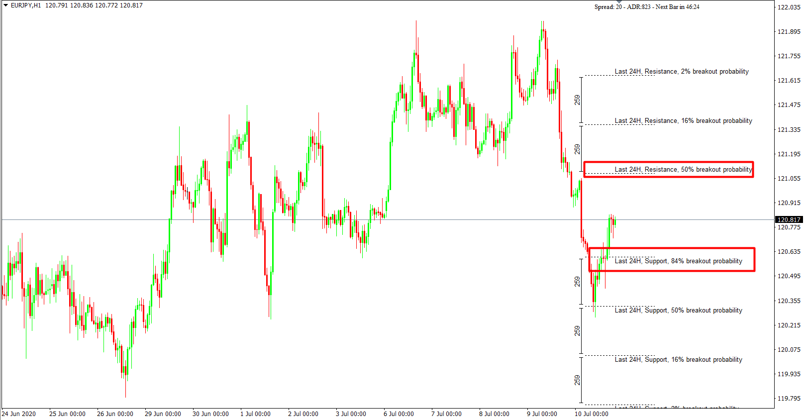 It always have 84% in support and Resistence it doesnt Update as you tell us. The 84%breakout Always appears in both in RESISTENCE and SUPPORT always 84%. I have using this indicator more than 3 months and it doesn Update.