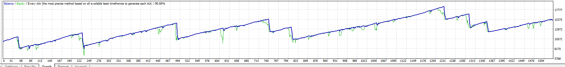 3) All inputs as default .. except MartinAdd = True , BasketSL = True (125) and LotMultiplier = 30;