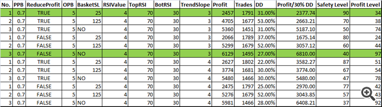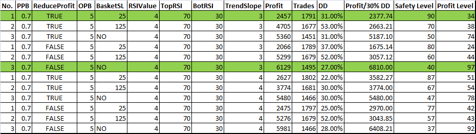 After 100s of combinations tested, here is a guiding summary table which shows various combinations of input values with their safety level, profit level.