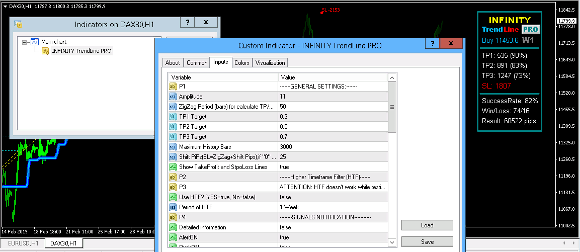 Or we use the DAX30 index with a period of H1 without a HTF filter.Result: 60,522 points at the same period.