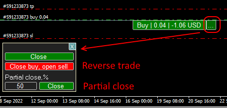 - added order menu for market orders with reverse button and partial close button