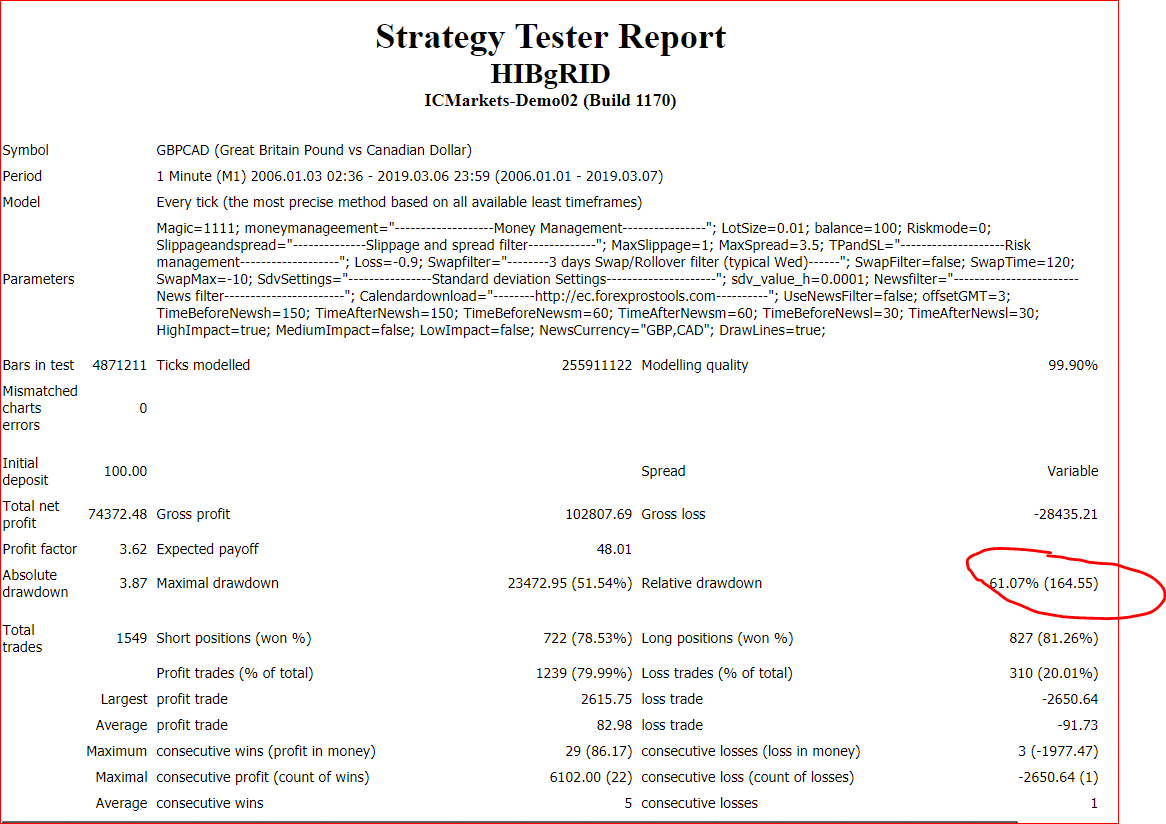 So around 61 percent max drawdown. However according to the developer this is very risky to run. I could try with a small amout just for fun...