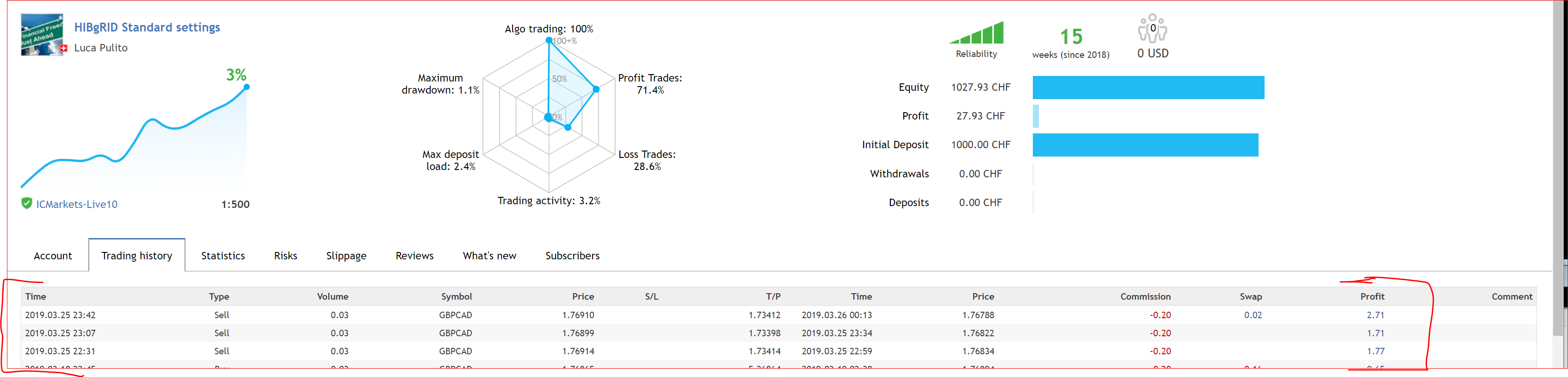 Hi Luca, I am live since Monday and I got 3 trades with HIBgRID standard settings. All closed with profits. Is that correct? Anybody with the same results?