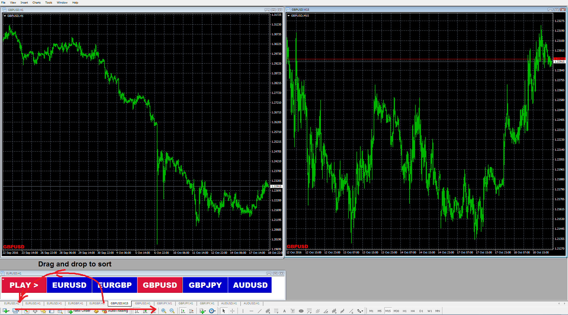 3 - Sort all chart by drag and dropping them from the chart bars. The first left chart in the chart bars will be shown as first left button in the chart clipper window.(see attached photo)