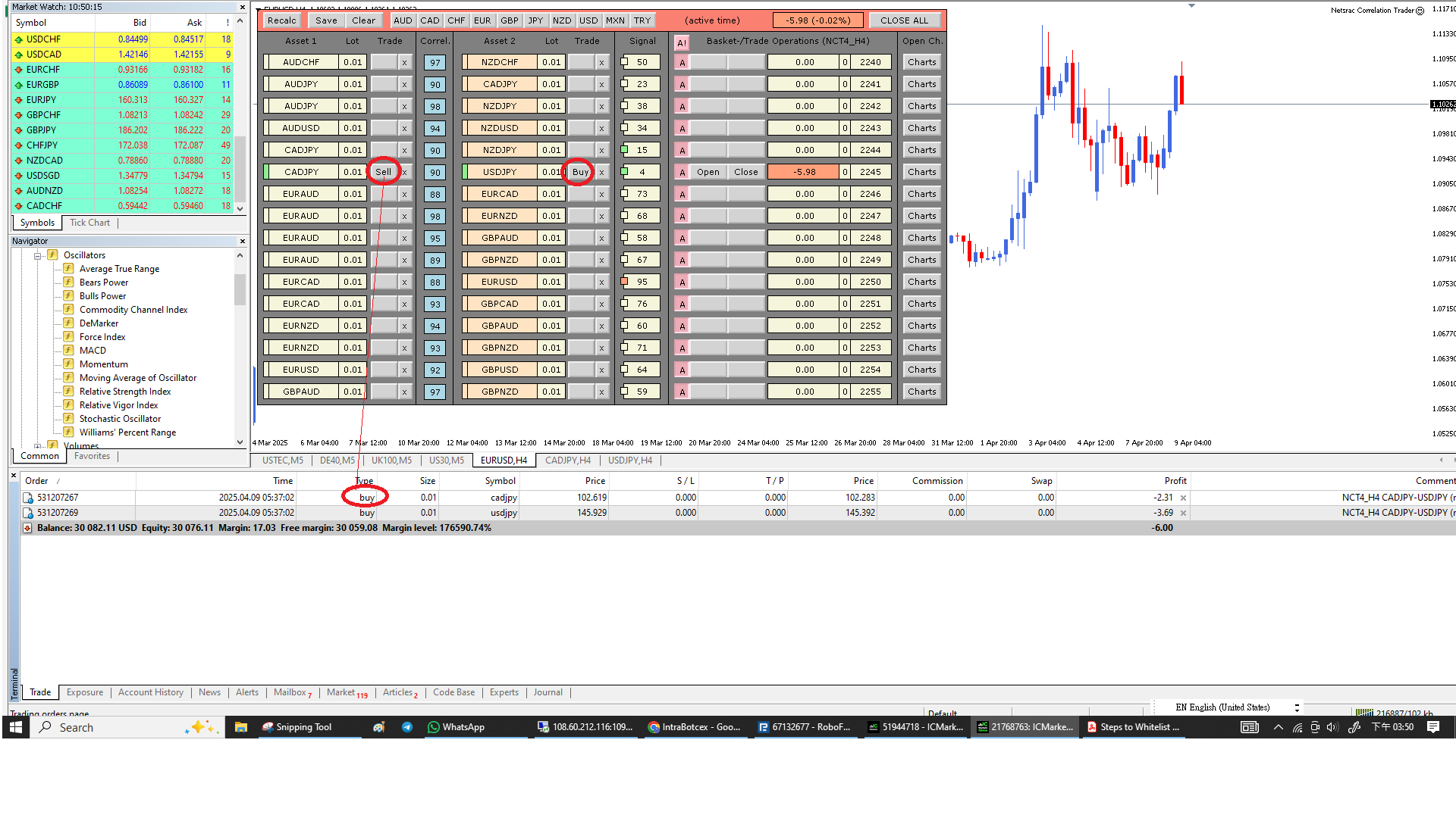 Si può provare a inserire un valore inferiore nella variabile "(CR03a) Minimum correlation in percent ". Utilizzate poi i pulsanti "Clear" e "Recalc", in modo che l'EA possa ricalcolare le coppie correlate. Se questo non dovesse essere d'aiuto, inviatemi le vostre impostazioni via pm.