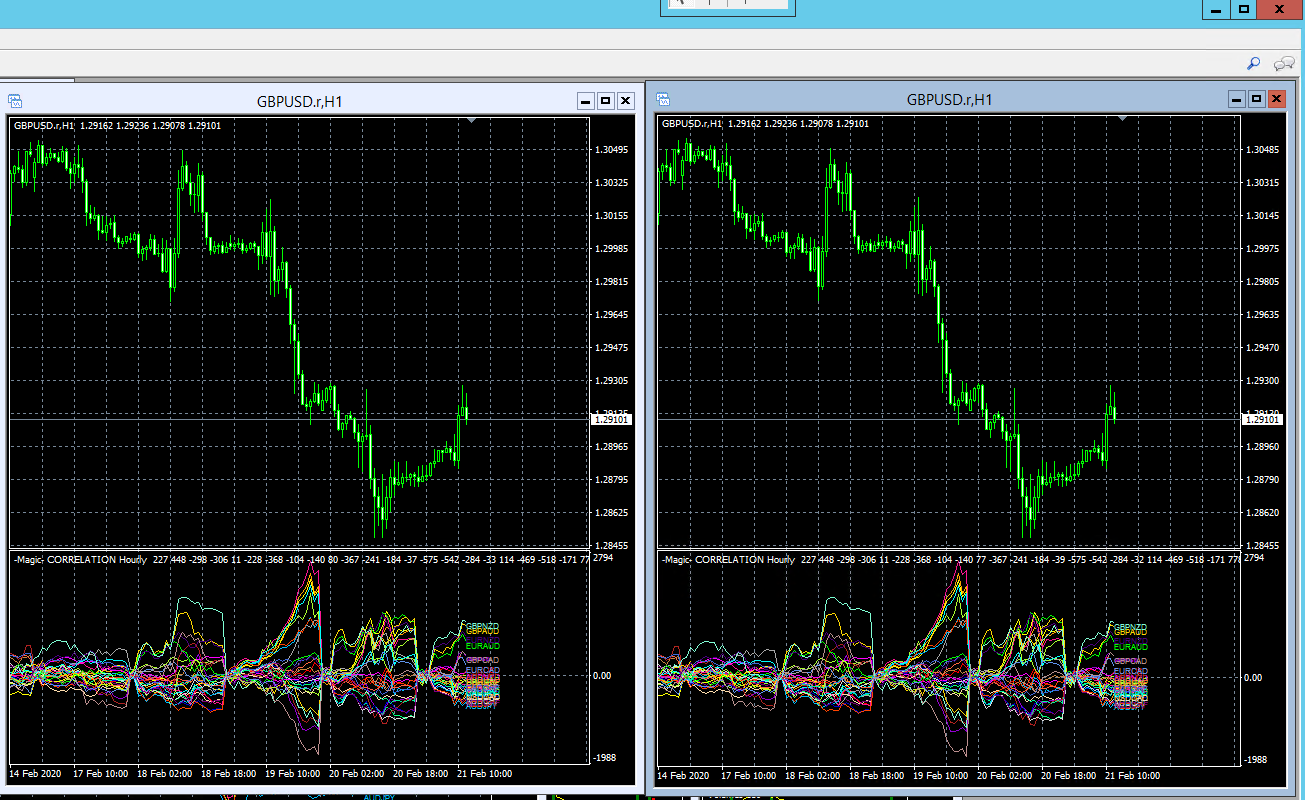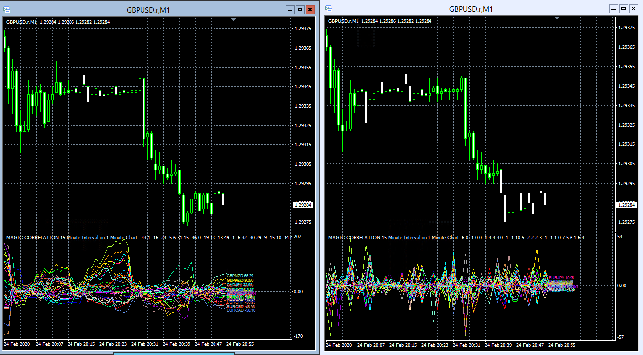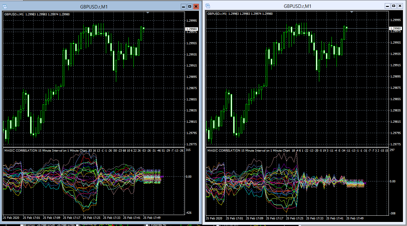 Both the GBPUSD 1 min charts have the same settings, namely -