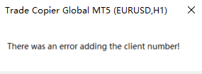I attached this EA on the master side on a Demo account. The following message poped up: There was an error adding the clent number! Do you know why?