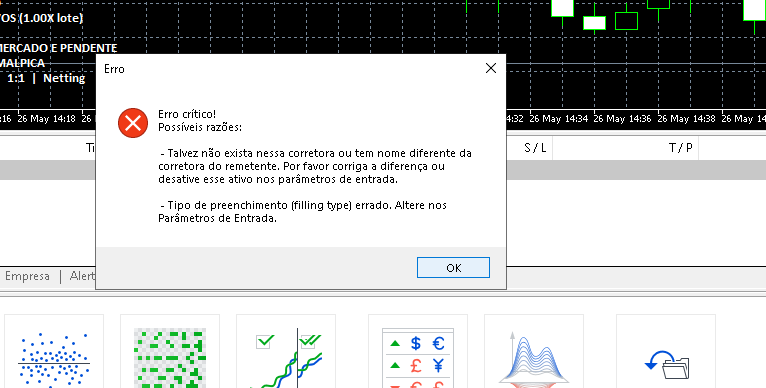 Olá Thiago, tudo bem? Cara, eu to tentando fazer ele copiar do Meta trader DEMO pra o Meta Trader conta REAL. Porém, quando alguma operação é lançada ele apresenta uma imagem de erro