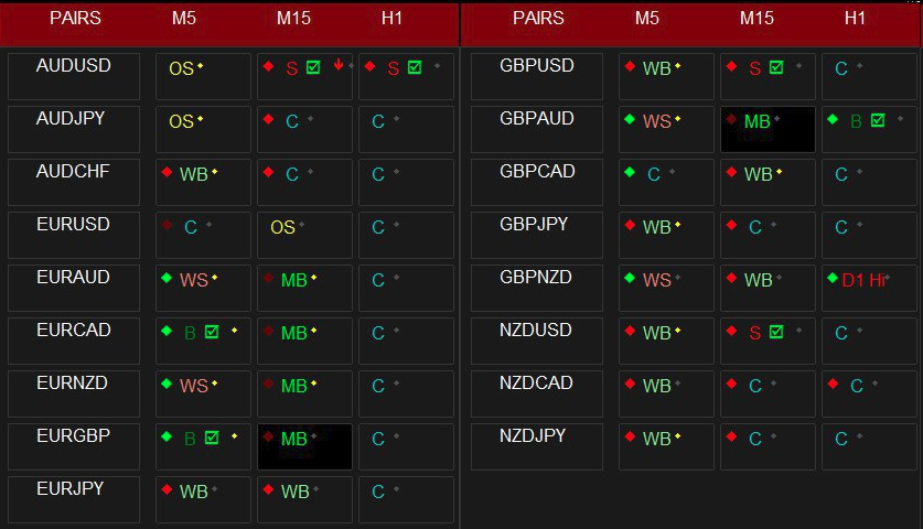 Green BUY or Red SELL signals occur when all conditions are in alignment.