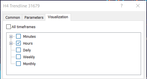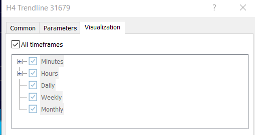 After clicking the hide button, all settings are reset and all objects appear simultaneously on all timeframes.