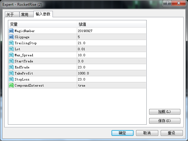 RocketRise EA's results observe the account signal:https://www.mql5.com/zh/signals/644156