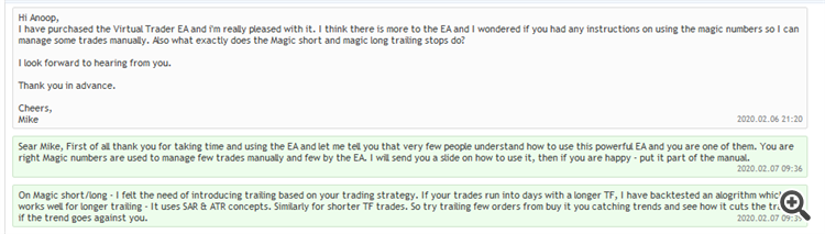 One of my happy users of this complicated EA. I will be making new features to support the Easy Virtual Trader users!