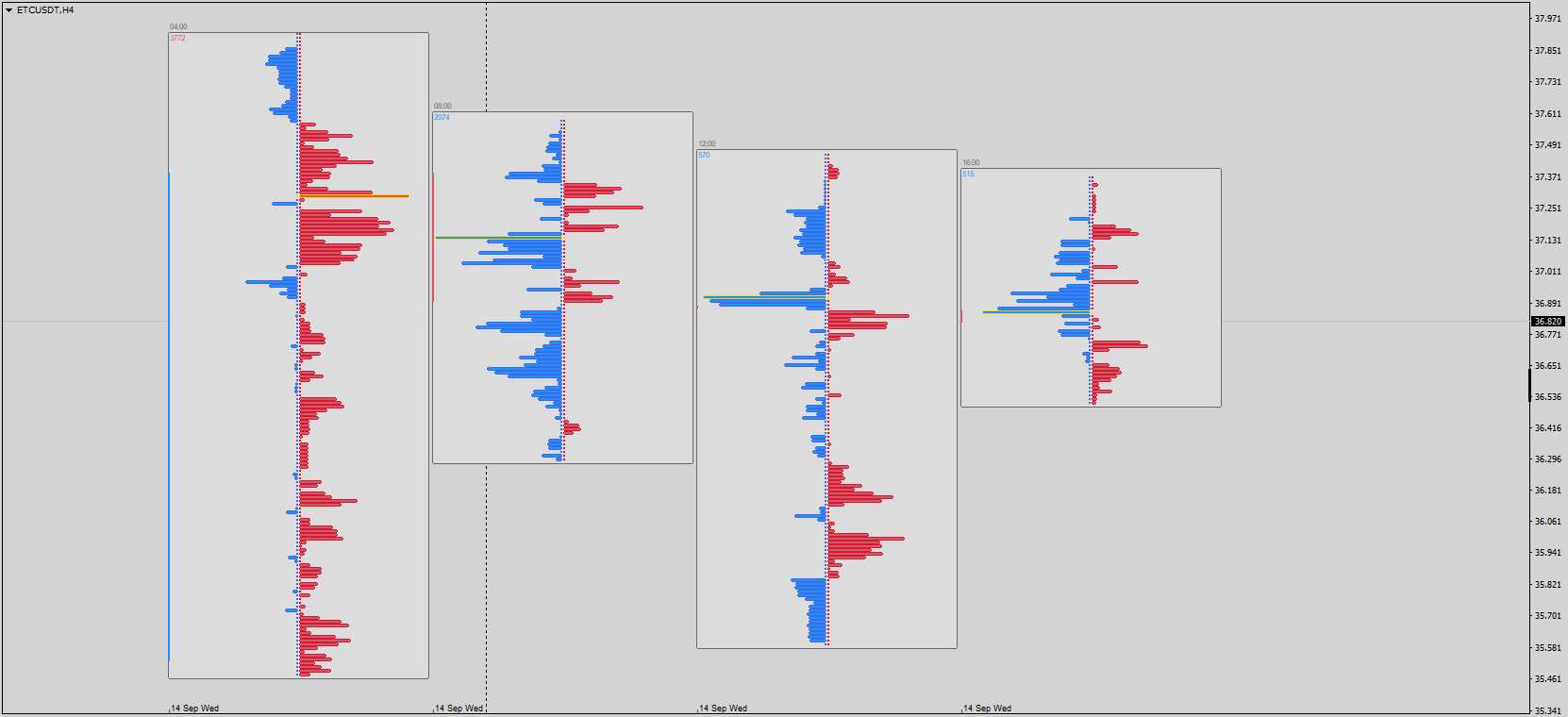 Приветствую Евгений. Купил индикатор и теперь с ним разбираюсь. Я так понимаю индикатор отображает максимум четыре свечи разного диапазона по времени в разрезе кластера на графике или нет - можно каким образом сделать , настроить clasters chart на отображение больших временных периодов в отрисовке кластеров на день ? Пока вижу в разрезе на всех тайм-фреймах только 4 кластера на 4 свечи разного типа ?