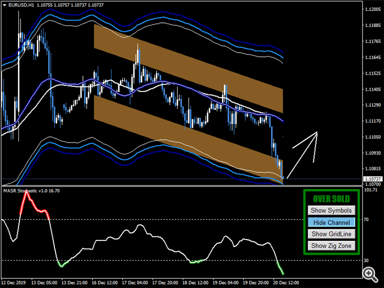 MASR Stochastic is a momentum indicator that tells you where is the close price relative to MASR Bands.