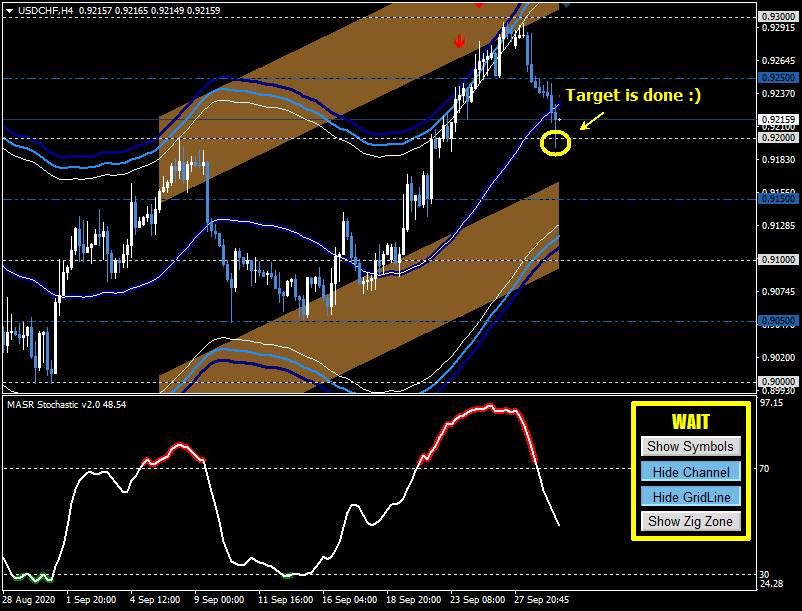 Conclusion. If the the USDCHF pair reversed its direction as expected then it might target the 0.92, which is the current value of the "MASR Bands Center Line".