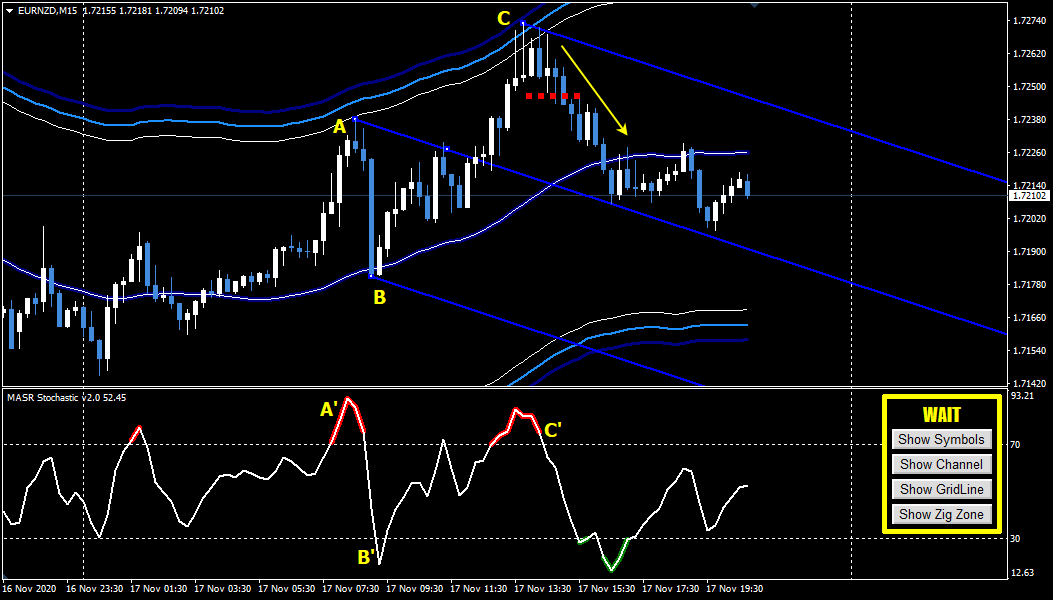 ✅ The points A & C show extremely overbought, while B shows oversold in between.