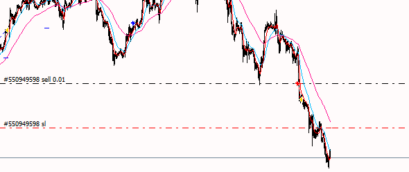 Making a simple configuration of crossing these averages in the EUR/USD pair in the 5-minute timeframe:
