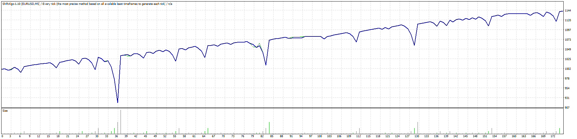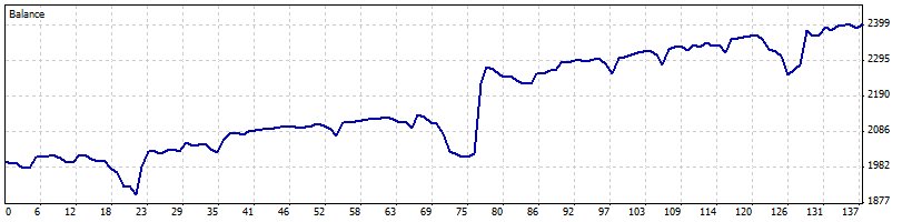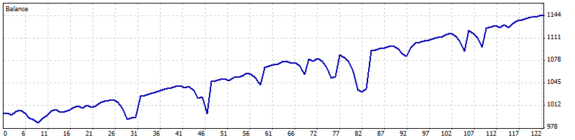 Its about +20% with conservative settings. Starting account is 2000 USD but should be 1000 USD!