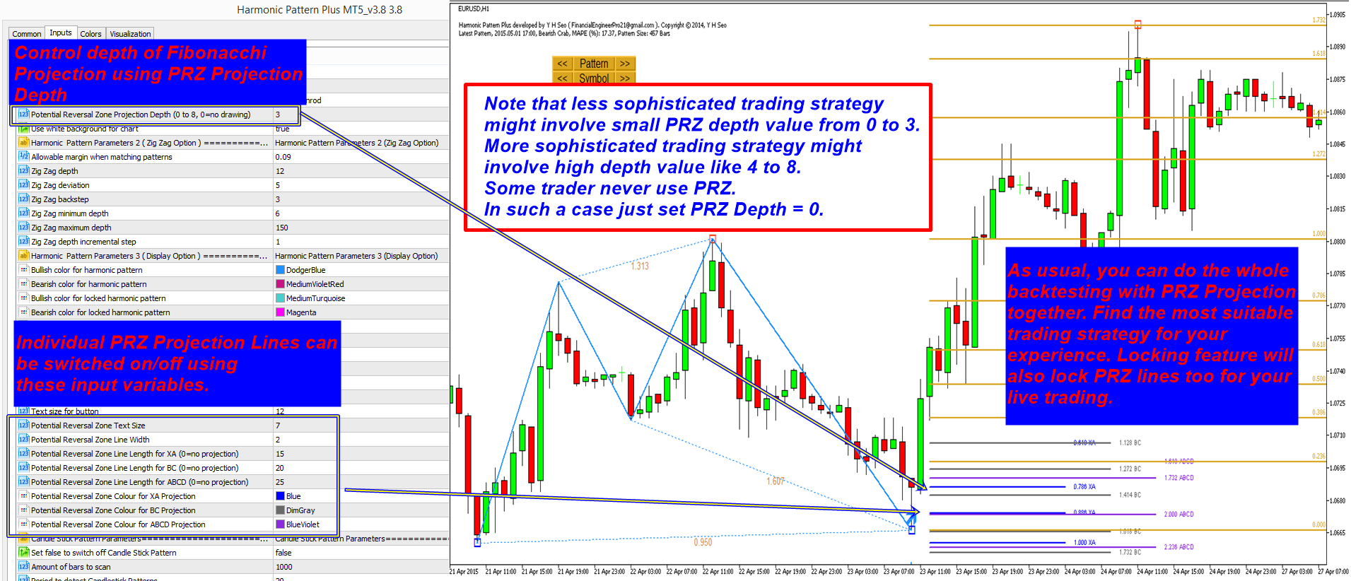 You can thoroughly back testing this PRZ idea to improve your trading idea with Harmonic Pattern Plus.