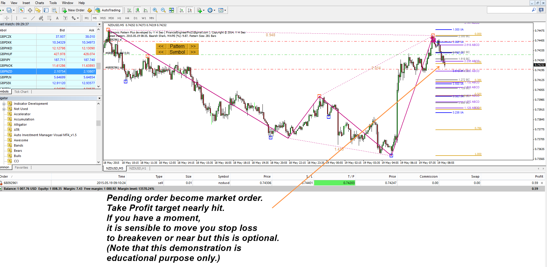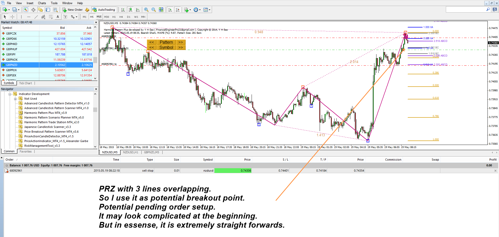 Small Pending order trading set up example based on PRZ identification.