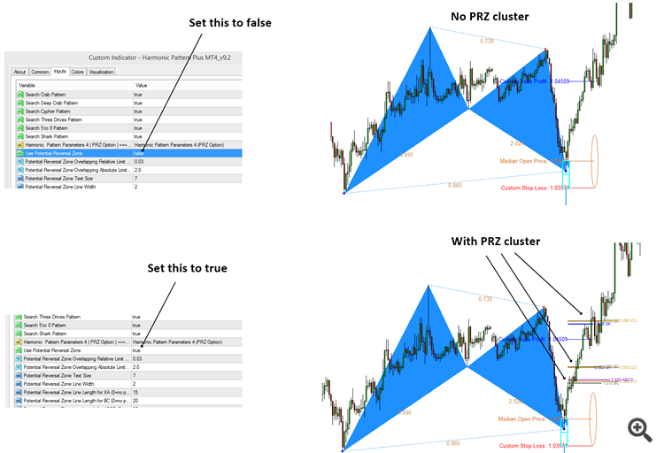 Cluster of PRZ lines for Harmonic Pattern Plus