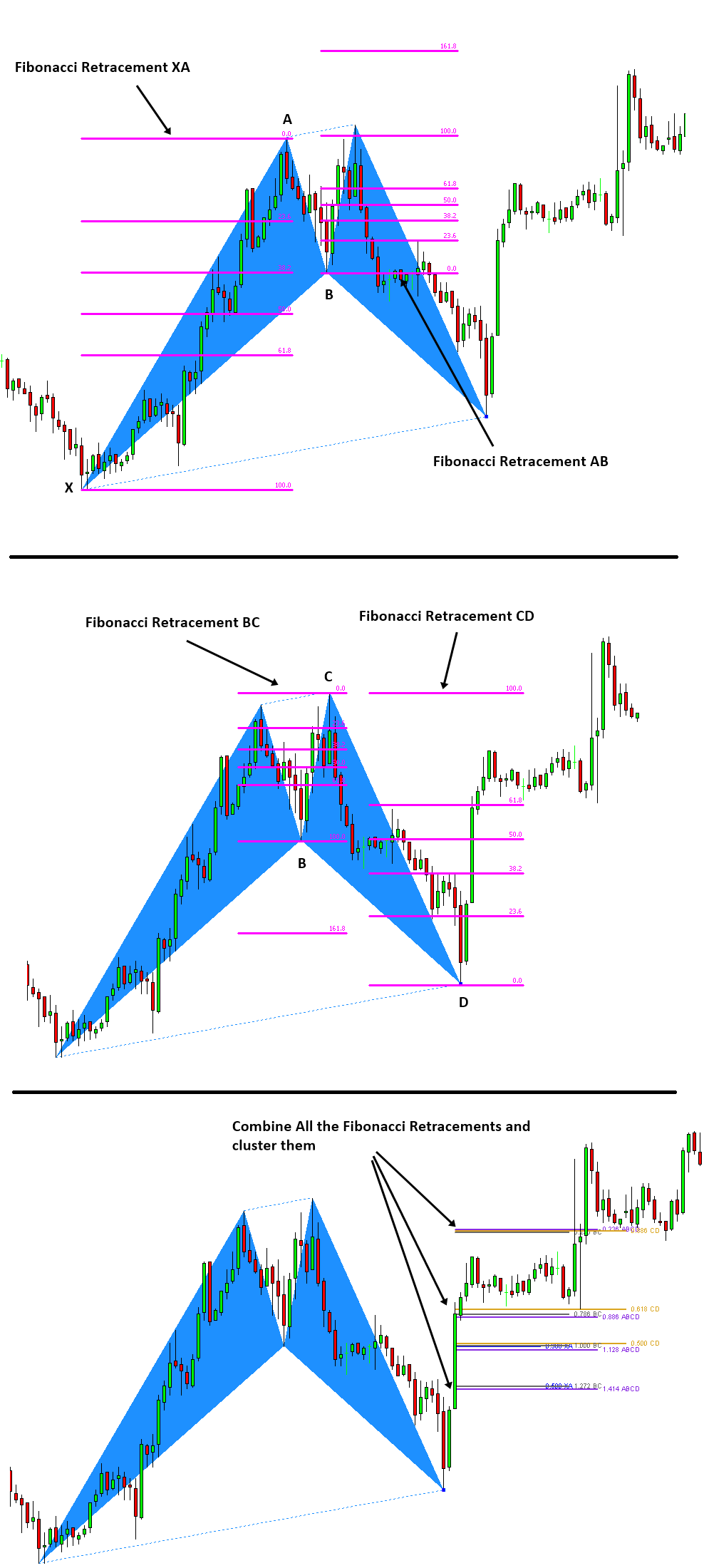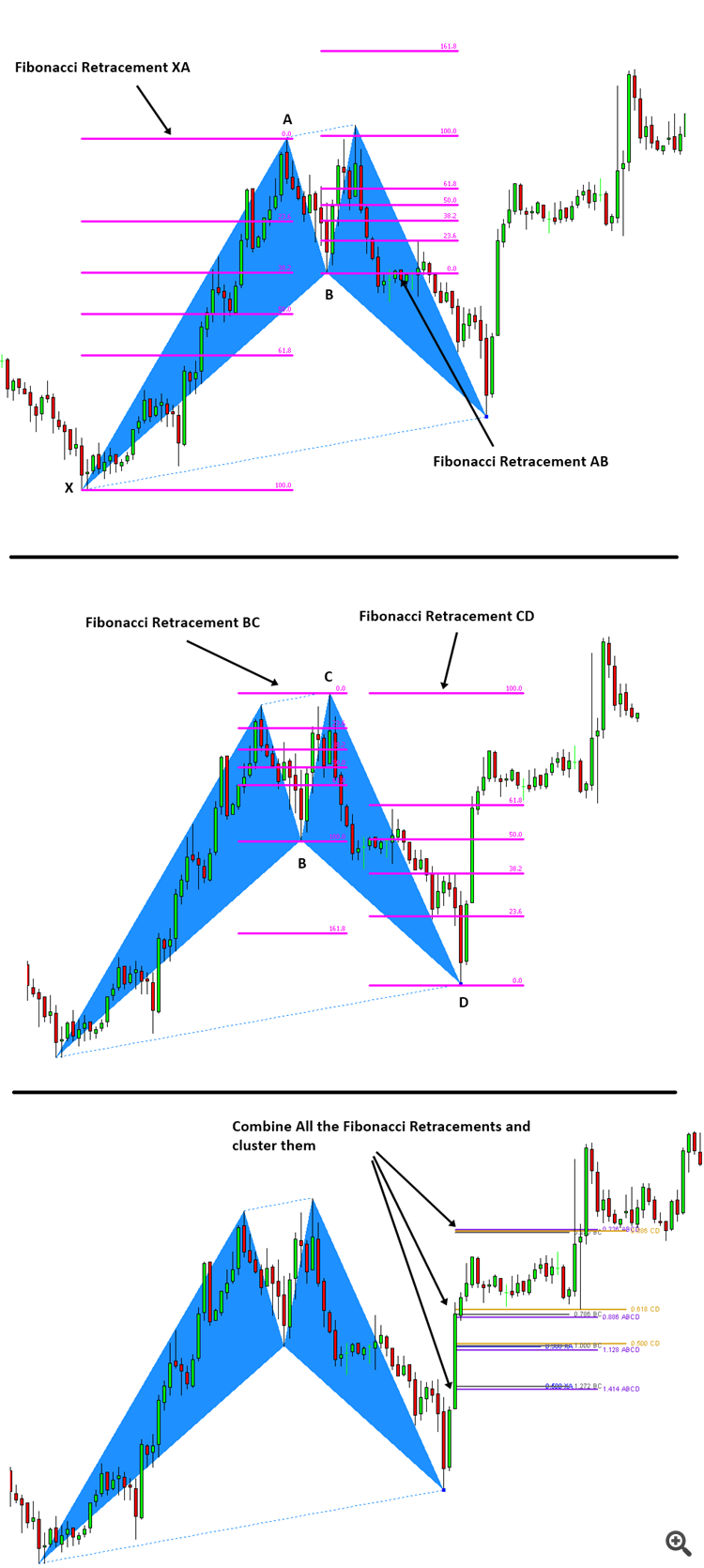Remember that many traders are trading with one fibonacci levels with some supplimentary confirmation, the cluster of PRZ lines are stacks of Fibonacci levels. Of course, traders can put high emphasis on this level as an important support and resistance levels.