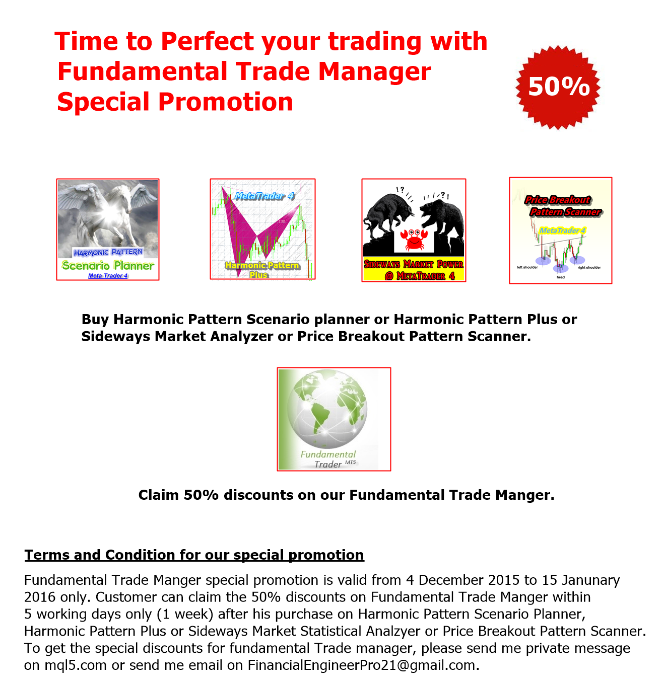 Here is a special promotion for serious traders. Buy top trading system and get 50% discounts for Fundamental Trade Manager.