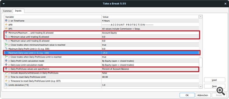 I am using an EA with Dll. So 1 MT5: I put Ea in the order; and MT5: I installed Ea Take a Break MT5 and Take a Break Indicator MT5.
