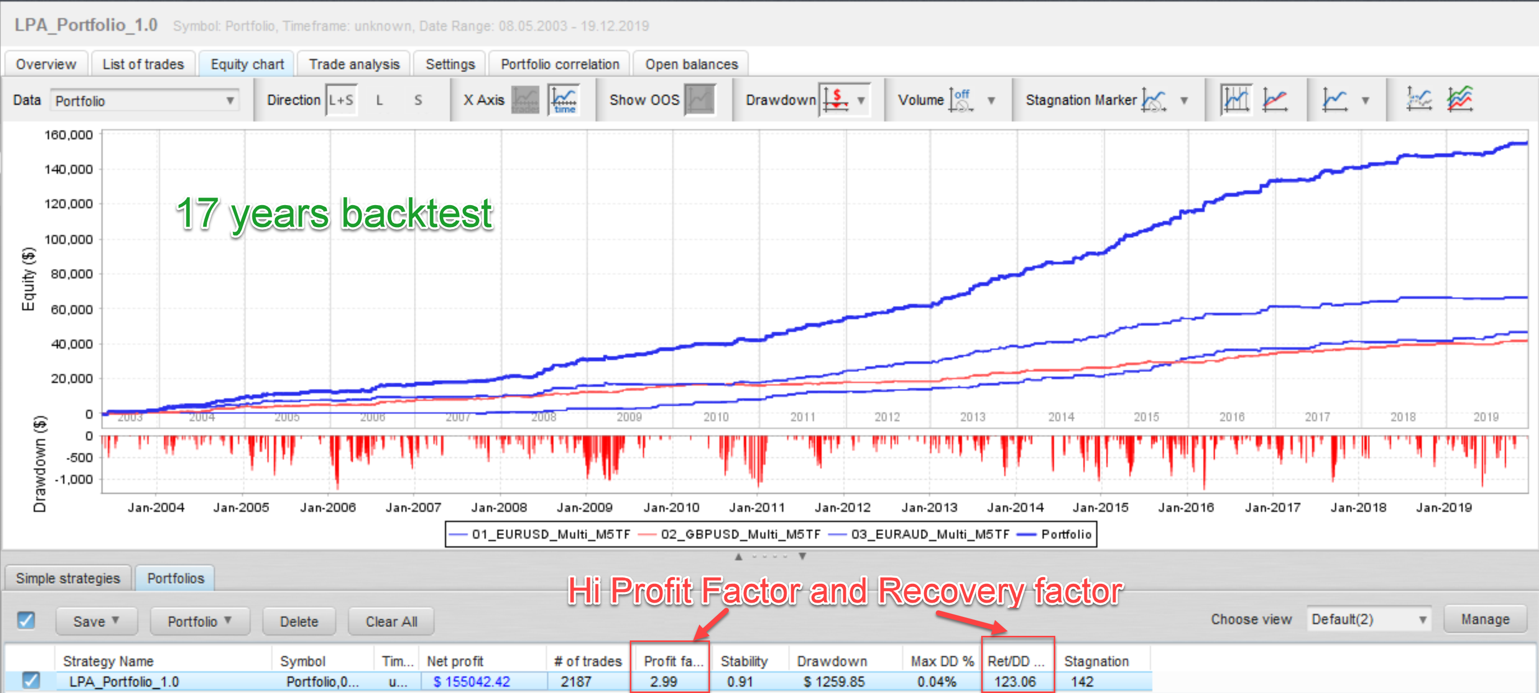 The portfolio (EURUSD, GBPUSD, EURAUD):