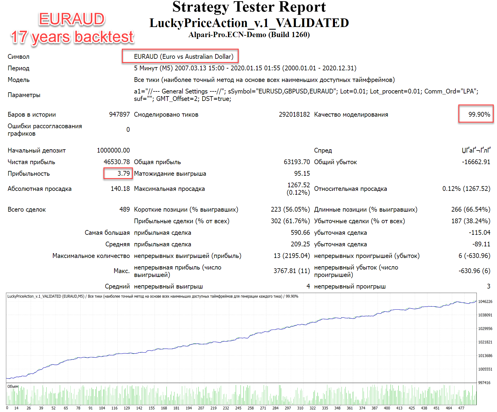 17 years backtests show that this strategy has high expectancy (in pips) and not broker-sensitive.