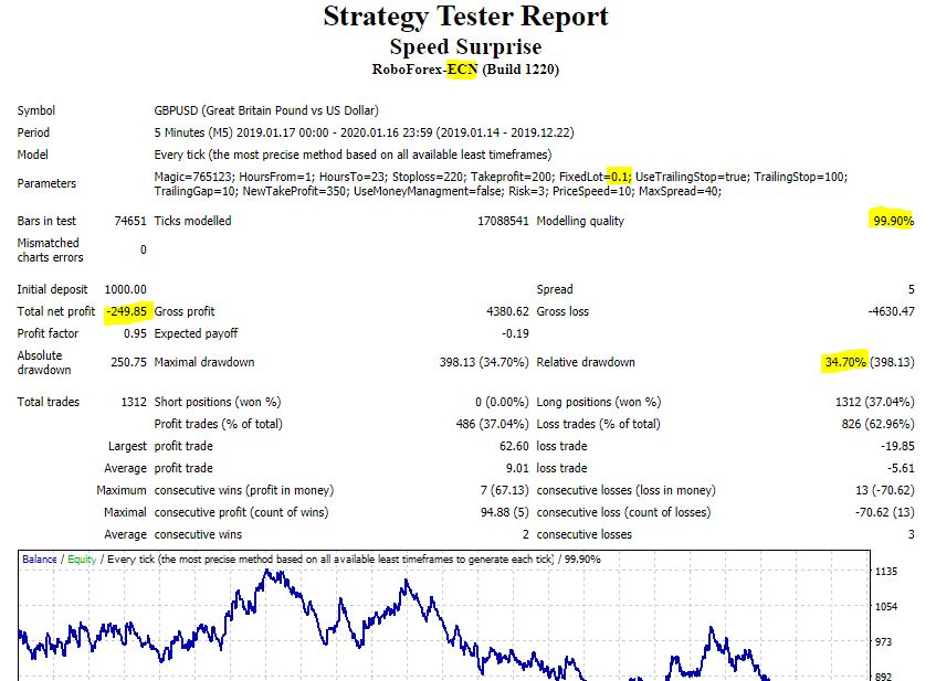 Hi. Are you writing about the BTCUSD currency pair? It has a very large spread. Therefore, this EA will not give profit for this currency pair.
