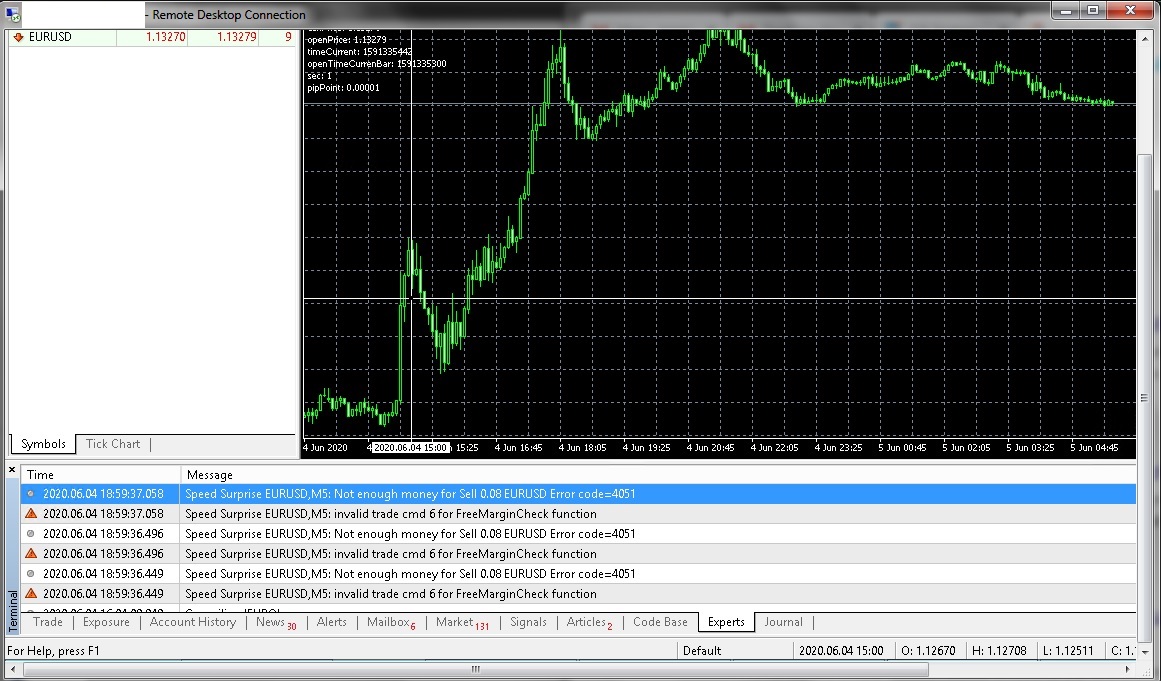 Now I delete the expert, restart the MT4, and install again, and load it again to chart. See tonight will it open position in profit?