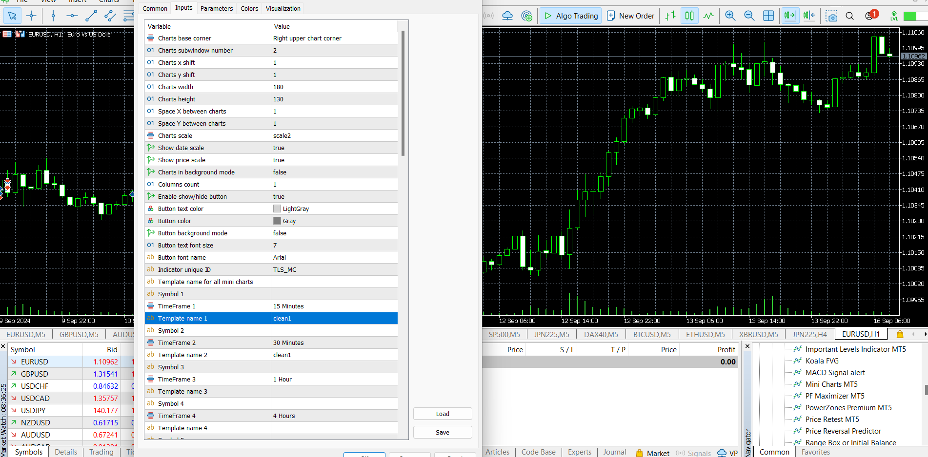 Reloaded the indicator, nothing happens. If I try to load Template name 1 I just change the template of current chart, not the mini chart.