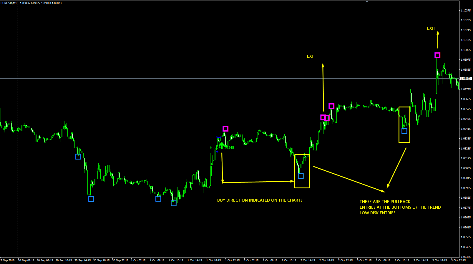THE OTHER WAY OF TAKING REENTRY IS USING THE PINK SQUARE BOXES IN SELL TREND AND THE BLUE BOXES IN BUY MODE .