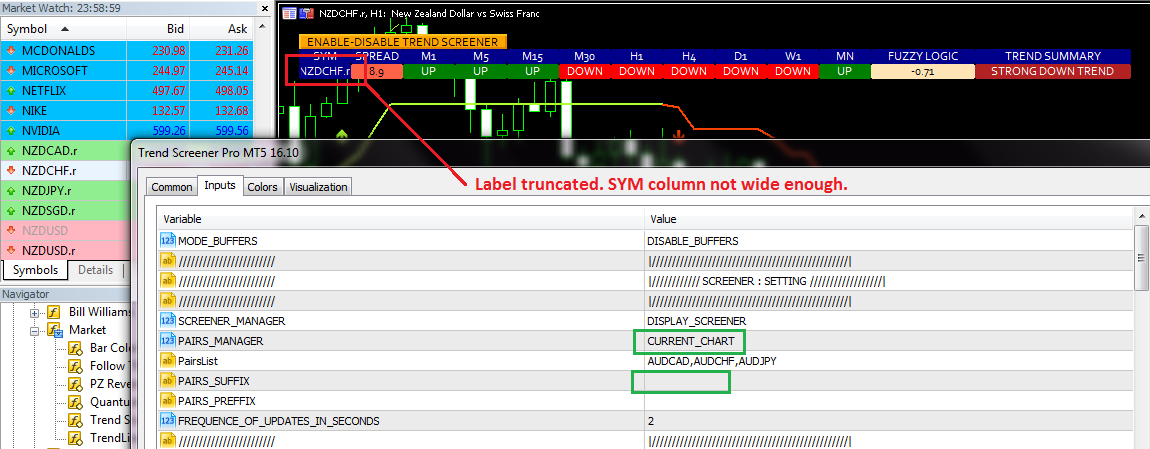 After selecting the 'ENABLE-DISABLE TREND SCREENER' button the screener panel attached to a ccy pair isn't very responsive in updating. I have to drag the chart left/right to refresh the state.