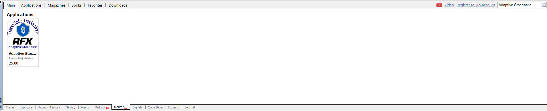 From Terminal (Ctrl+T) of your MetaTrader 4 select <Market> tab, then in the search box on top right of this tab type "Adaptive Stochastic"