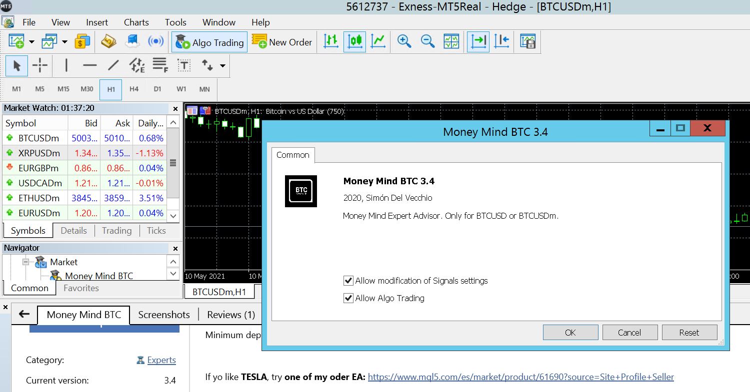 2021.05.12 05:38:44.358 Experts expert Money Mind BTC (BTCUSDm,H1) loaded successfully.