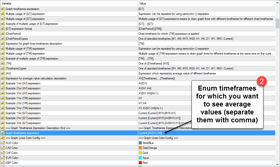 Kindly assist: Where and how do I activate Average value graph lines?. Regards