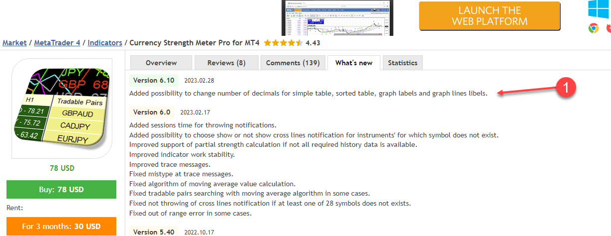 New update for Currency Strength Meter Pro for MT4 version 6.00 has been released
