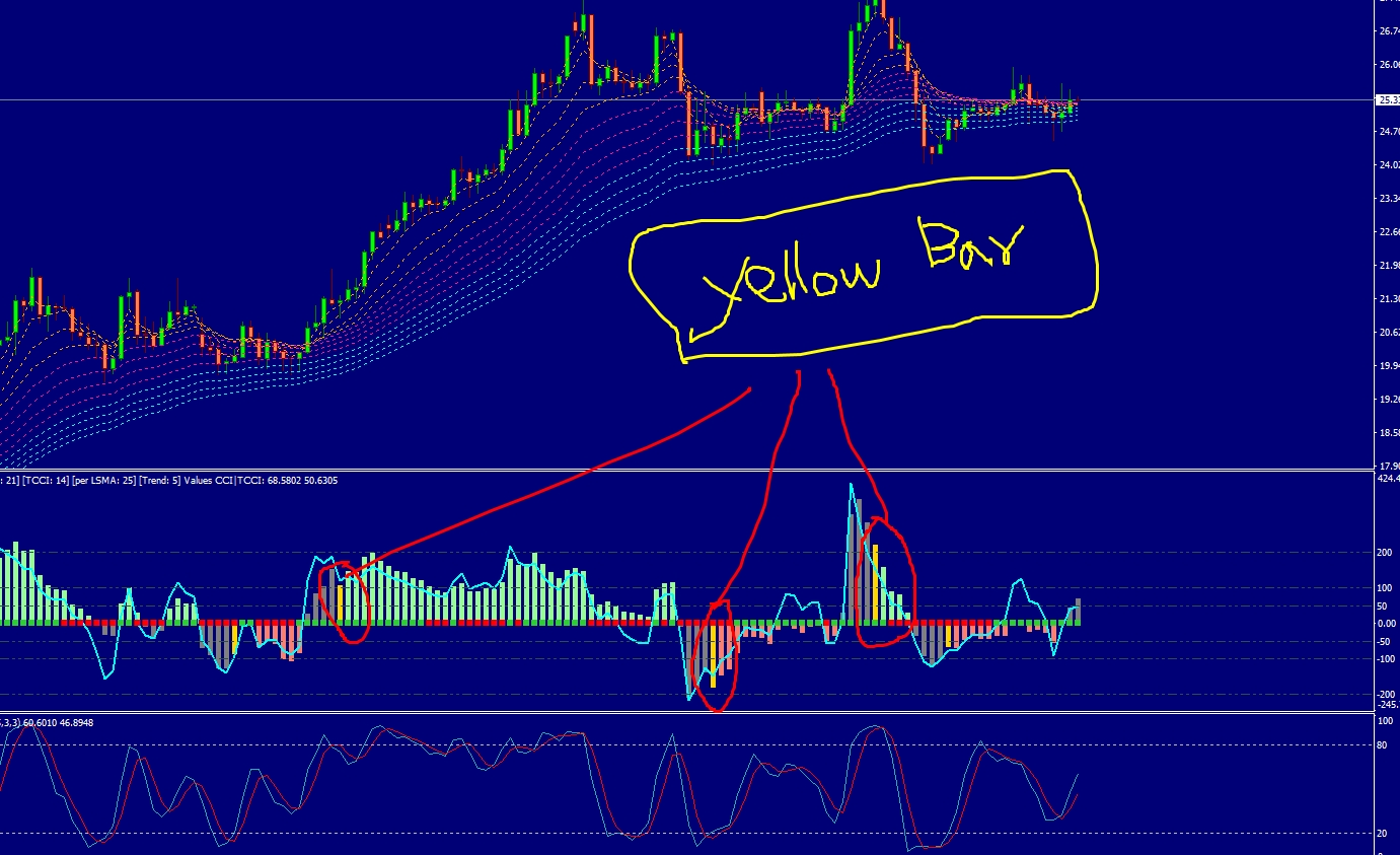 Yellow bars ar signal for a possible change of the trend.