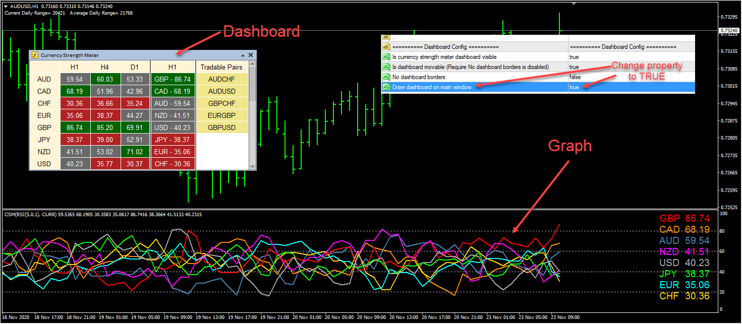 Also if you have your own strategy you can back-test. Find winning trades on history data and setup CSM to this date and look what are CSM values were at that time. Do this at least 10-20 times. Calculate average value. And when you want to take a trade look to CSM if it shows about same value you should take a trade if not skip this trade. If you will do this your win rate must increase.