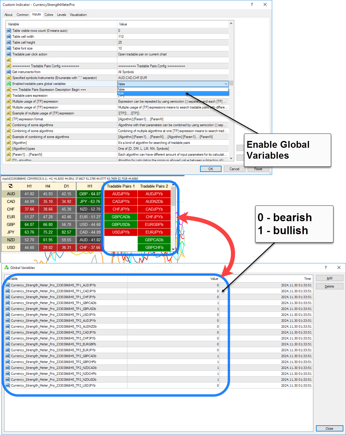 - Added MetaTrader global variables for tradable pairs.