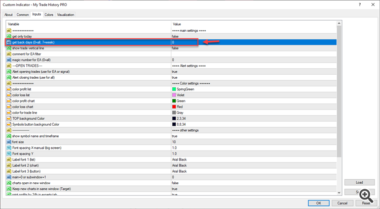 When you click to show a trade, it can be displayed in a target chart instead of the main chart.