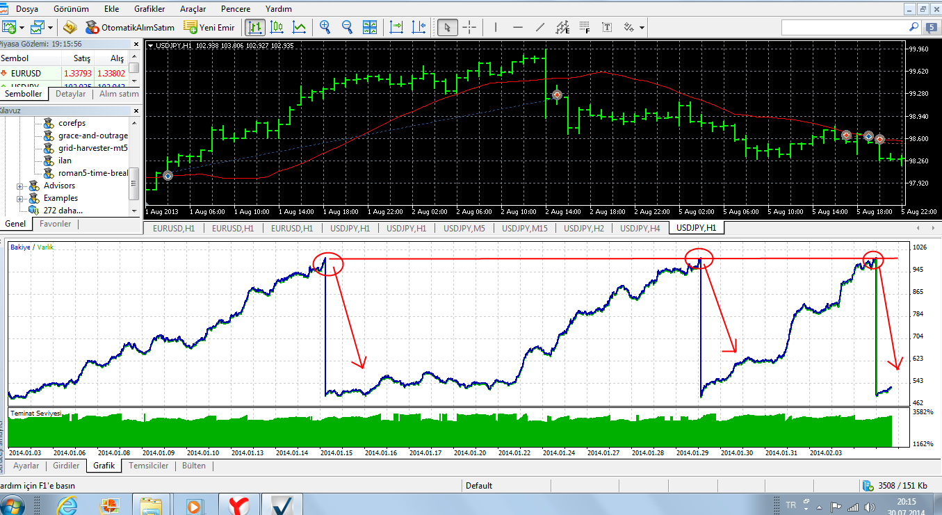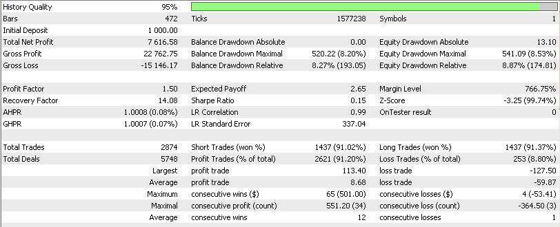Ставлю на демо счет (робофорекс демо ECN, как тут и рекомендовалось). Результаты странные.. 2 раза слив за 2 часа, сейчас у же не берусь прислать на каких параметрах, возможно один раз на дефолтных, второй - на оптимизированных, но может не так хорошо... ладно, пропускаем..