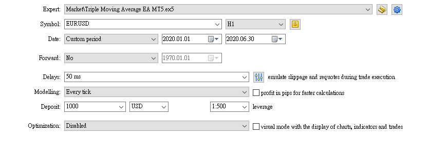 Please if I can ask you to go to the Inputs tab in the tester and make sure that you have the input parameters which you would like to test for EURUSD H1. Then right click anywhere there. From the pop-up menu you will select Save. You will then save a .set file. Please if you can send that file to me.